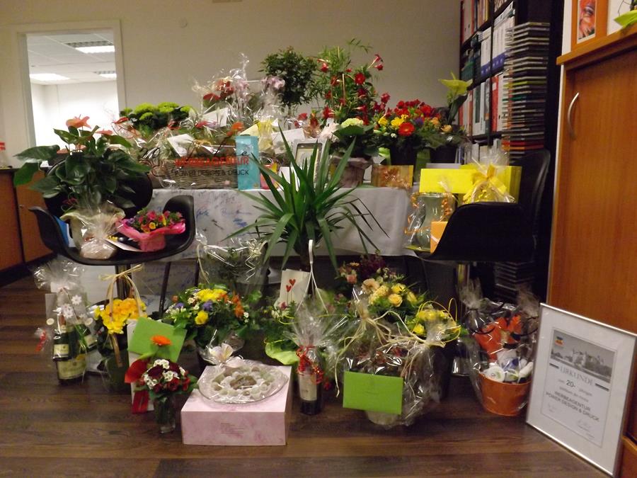 Vielen Dank für die vielen Glückwünsche, Blumen und Geschenke anlässlich unseres 20jährigen Geburtstages. Es kamen so viele Gäste, dass wir gar nicht mehr dazu gekommen sind Fotos zu machen. Deshalb hier nur die Bilder von vor 10.00 Uhr und das Blumen- und Geschenkemeer nach 19.00 Uhr.